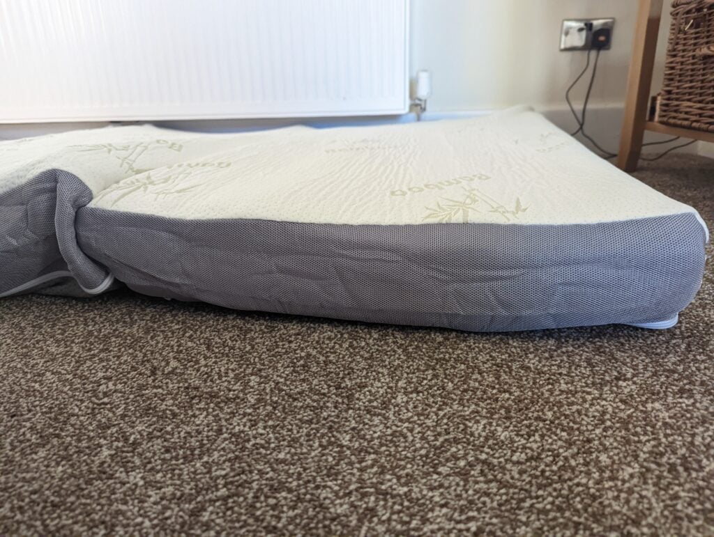 Due to the way it folds, one of the mattress sections has quite a large gap in it, with the cloth joining the middle section on the ground level. On the other end of the mattress, the cloth runs flat across the top. This looked like it would be irritating with the potential for the mattress segments to pull apart when asleep. However, it is not too bad, I kept the section with the gap for my lower half while my upper body was on the smoother section.