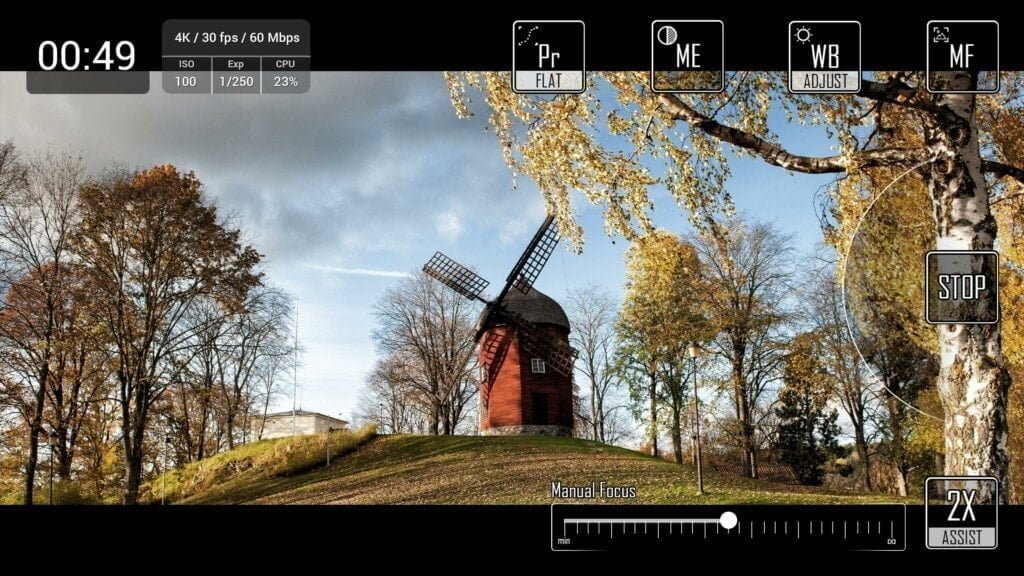 This is one of the few professional video capture applications that is distributed for free. The feature set is significant. It includes automatic and manual control of settings during the shooting process, selection of shooting formats, color control in the frame. GPS video tagging and auto-compression for reducing the size of the final file are available.
