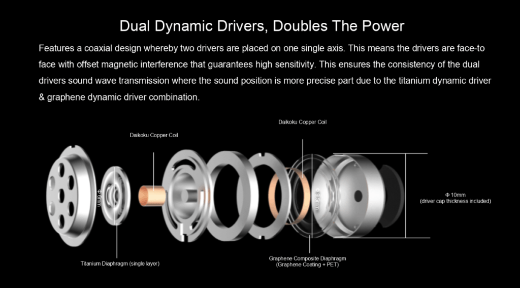 - Graphene + titanium dual-dynamic driver design