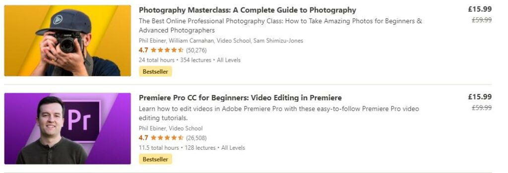One example course is the Photography Masterclass, which is just £15.99, and for that, you get 23.5 hours of on-demand video and 63 articles.