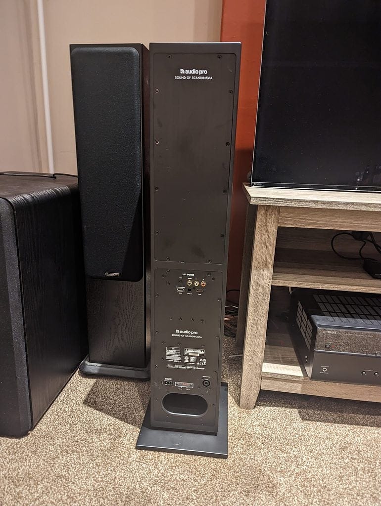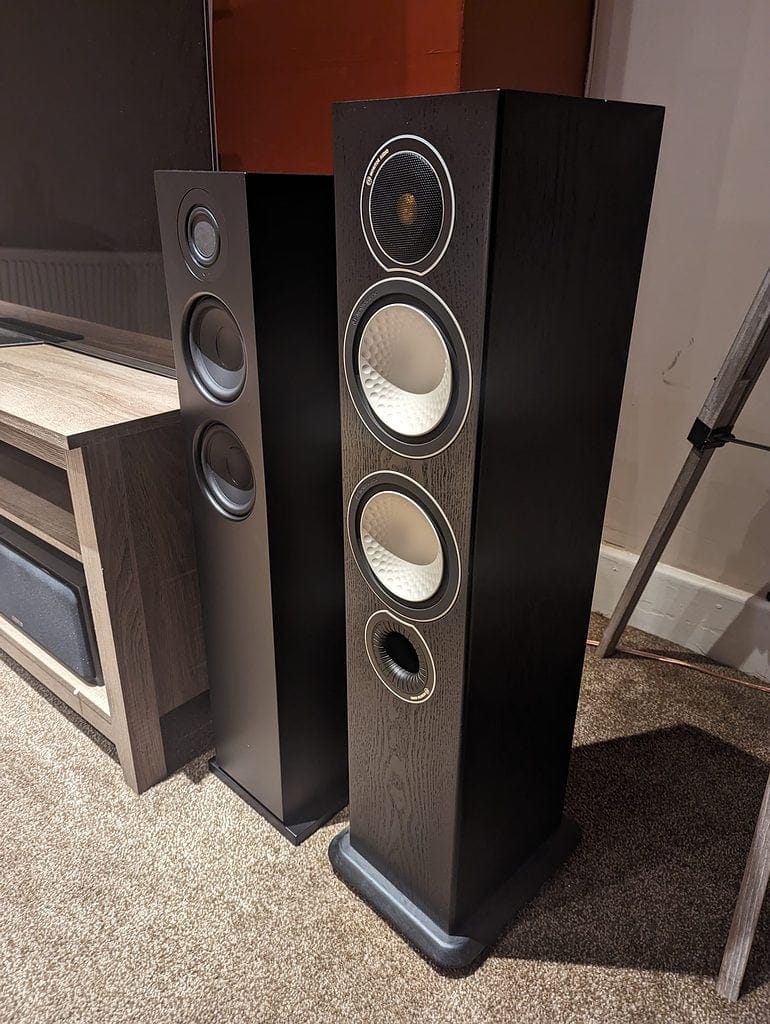 For testing, I used them in my main TV room, where I have the Monitor Audio Silver 6 floor-standing speakers (plus centre, surrounds, and a gigantic Monoprice Monolith 12 subwoofer) paired up with a Yamaha RX-V685 AV receiver. In this setting, I switched my system to 2.0 for a fairer comparison.