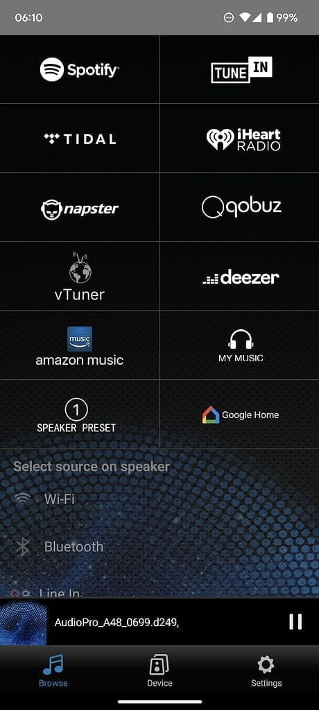Obviously, one of the big selling points for Audio Pro is the multi-room functionality and music streaming. I wouldn’t say it is quite as good as Sonos, but it is close enough. You have a wide selection of music services, including Spotify, Tiday, Amazon Music and more. YouTube Music isn’t built in, but Chromecast is, so you can stream that way. Similarly, with Spotify, it uses Spotify Connect, so you need to use the Spotify app to access your music.