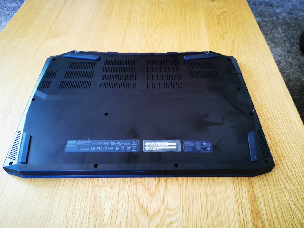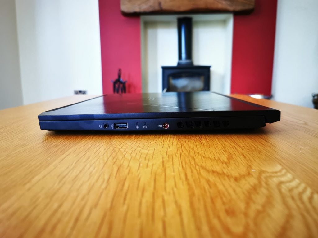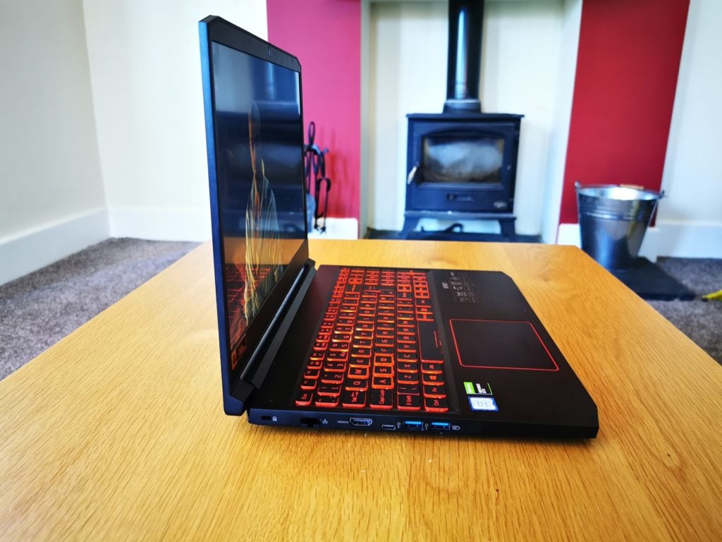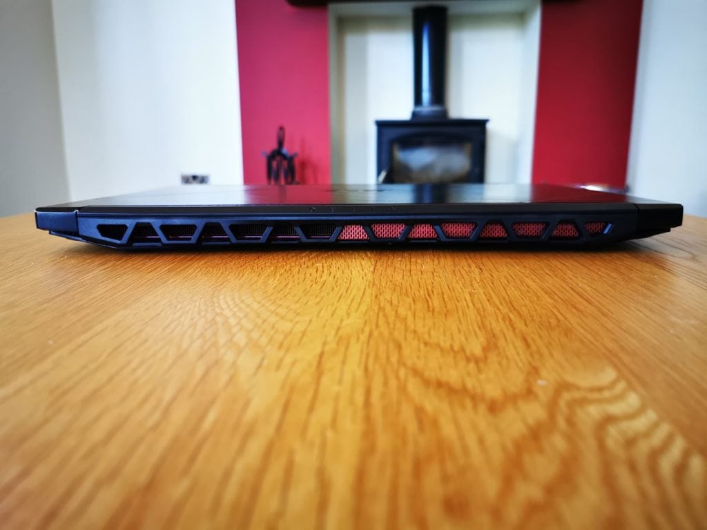 Sitting at the top of the Nitro line-up this has a premium design and build with an attractive black brushed aluminium chassis. With the lid closed this doesn’t scream about being a gaming laptop, the angular vents on the rear are perhaps the biggest give away. Powering it up, lights up the keyboard in red providing that ubiquitous gaming aesthetic, admittedly it is not actually RGB, just red. I loved the brushed aluminium chassis, but it is a smudge magnet, I had to wipe down the machine more than once when taking photos