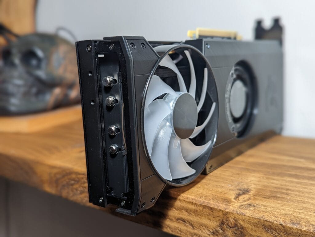 I don’t have a sound meter for the fans, I wouldn’t describe them as very loud. They are definitely less loud than my old Zotac RTX 3080. They have a mid-range pitch which isn’t awful and certainly better than some of the high-pitched fans you get.