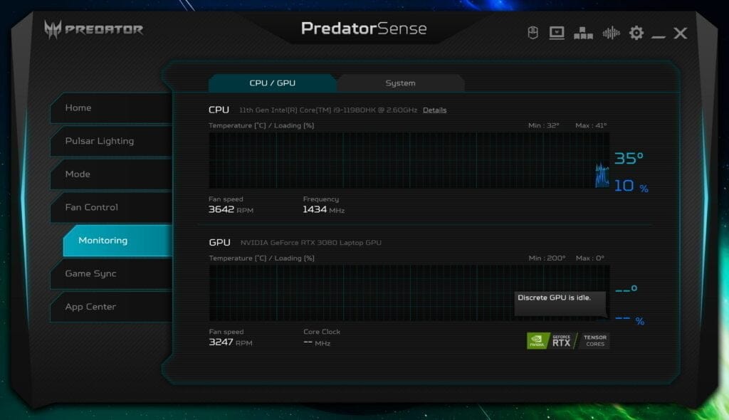 While I don’t like Jumpstart, Predator Sense is good, providing you with easy to access controls for all the settings you need. This includes fan profiles, RGB lighting and a variety of other features.