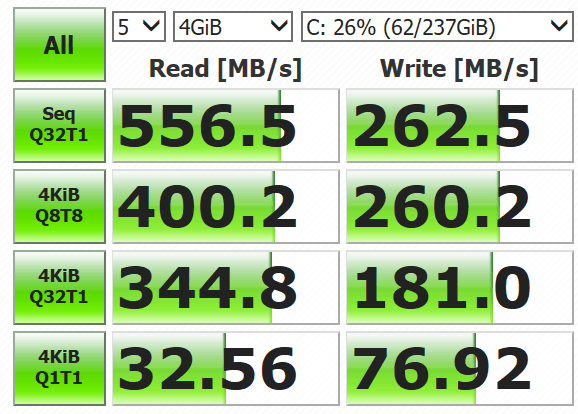 You obviously don’t get a proper graphics card, and therefore you must rely on Intel UHD Graphics 620; it will handle light gaming OK but don’t expect to be playing AAA titles at high settings.You only get an SSD based M2 drive here, which is understandable considering the price. Read and write speeds are around 550MB/s and 262MB/s which is good for an SSD but not competitive the NVMe. Again, it is unlikely you would notice the difference between this and an NVMe drive in the real world.