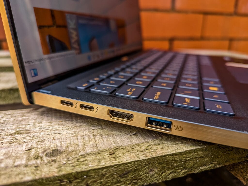 Connectivity is excellent as far as ultra-portables go. On the left, you have two Thunderbolt 4 ports which can both be used for charging. Then there are also two USB 3.2 Gen 1 ports. More than enough for any peripherals you may want to use without resorting to a hub.