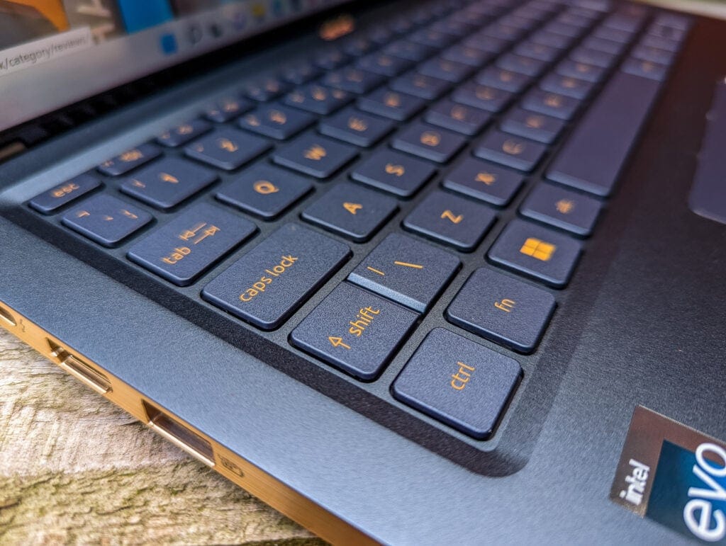 The keyboard takes almost the full width of the laptop, and this allows some decent spacing between keys allowing it to be as usable as possible for a laptop this size. Key travel distance is about as good as you can expect from an ultra-portable.