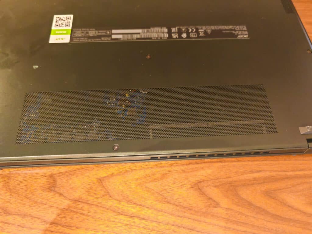 While the laptop performs well, it tends to get a bit noisy under heavy load. I think the slim nature of this laptop contributes to the problem. You can see the fans on the underneath of the laptop, and they are clearly extremely slim fans.