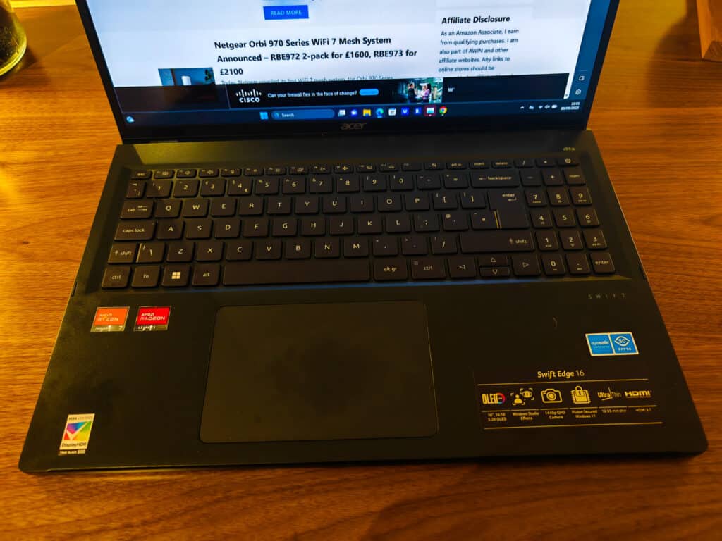 [table id=587 /]The Acer Swift Edge 16 I was sent comes with a powerful AMD Ryzen 7 7840U CPU that ensures swift multitasking and smooth performance. This processor is paired with 16GB RAM, which is the new ultra-fast DDR5.