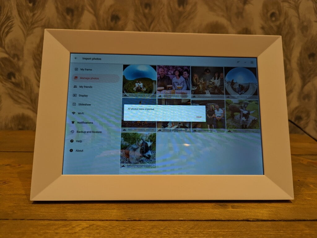 Perhaps the only negative about the above is that the frame doesn’t seem to automatically show images from a USB, you have to import them to the internal storage.