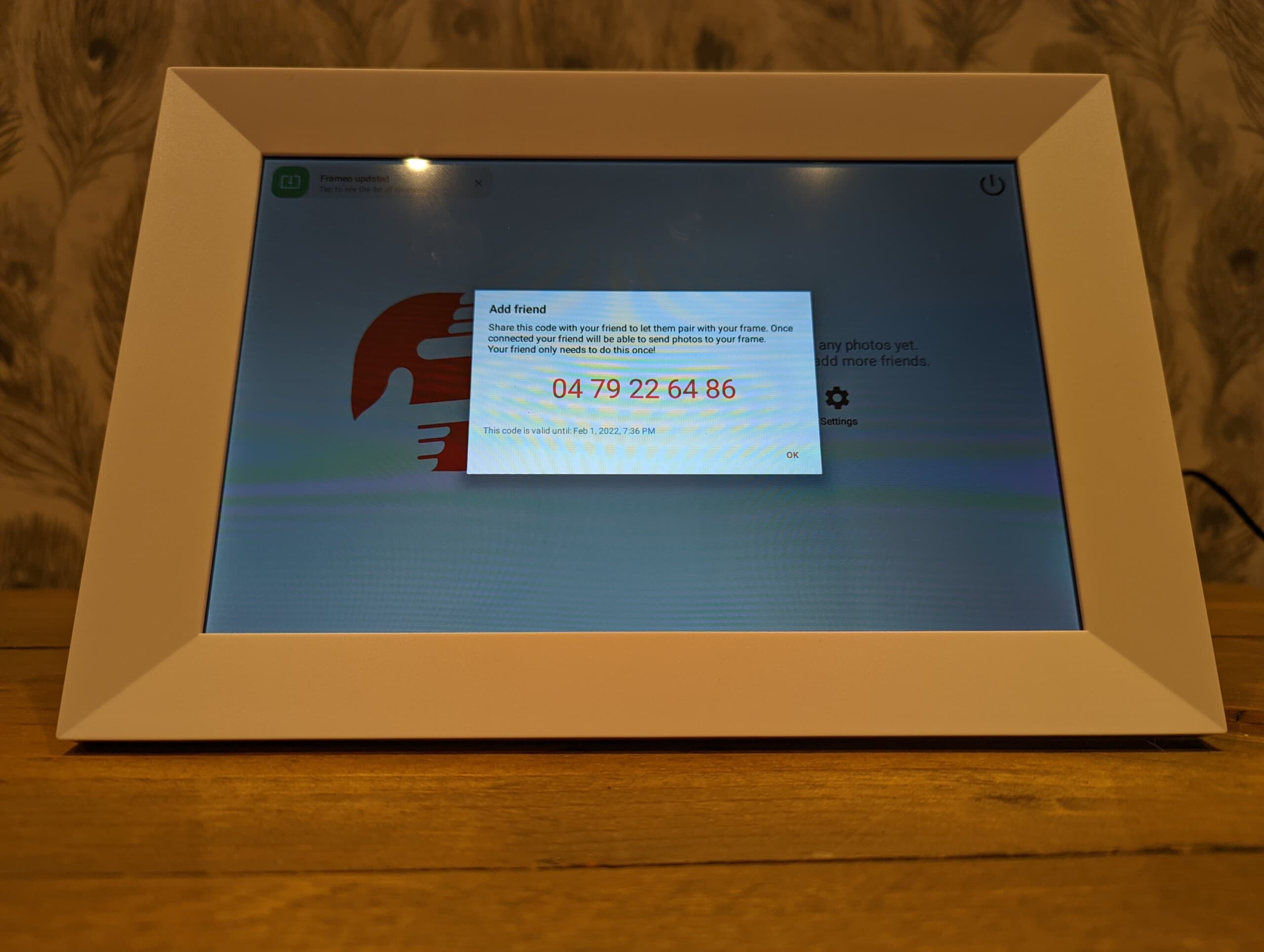 At the end of the process, you will be told to add a friend, which provides you with a registration code to be used with the Frameo App.