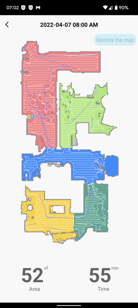 Like many robot vacuums nowdays, this can also mop your floor. This has a proper water tank that can hold 300ml of water and the robot can control when this is on. This, therefore, allows you to set up no mop zones.