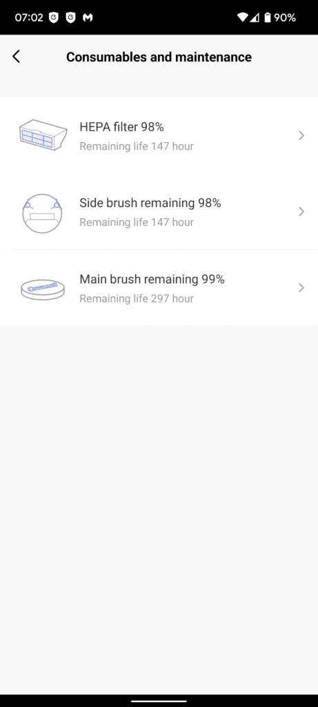 General cleaning performance has been good, the maximum suction is 2600 Pa, which is on the higher end for the vacuums I have reviewed. The robot will automatically change the suction when it detects carpet, which works well. With the robot comfortably covering my home one charge, I ended up setting the suction level to max on the scheduled clean.