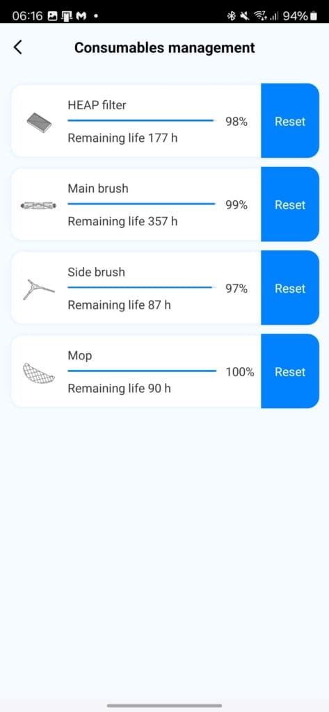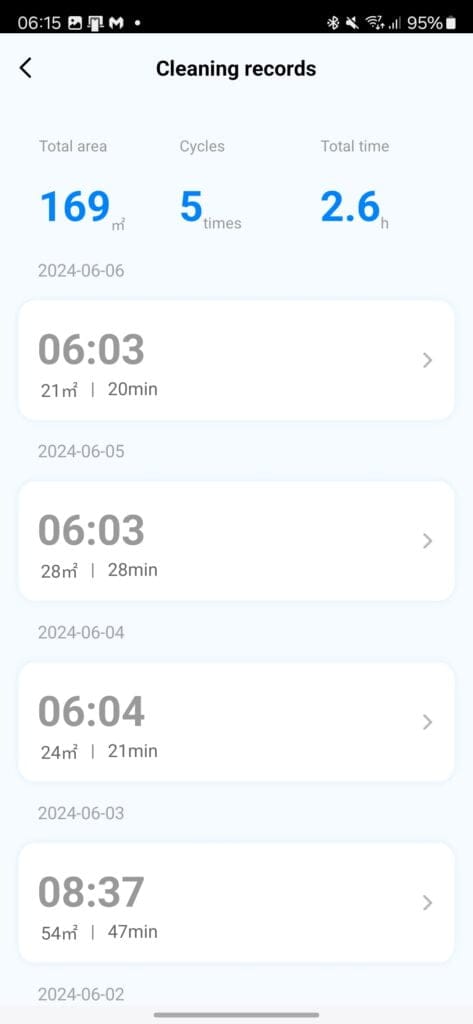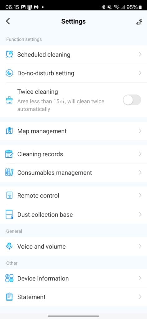 The app has plenty of options for you to customise the cleaning. The schedule is the main thing, and you can set the frequency, cleaning settings and which areas to clean.
