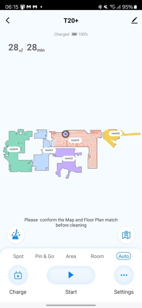 The T20+ uses LiDAR for mapping and navigation combined with Airrobo’s new USLAM Air 5.0 algorithm. In my testing, the mapping worked well with the vacuum, creating an accurate map on the first run without getting stuck.