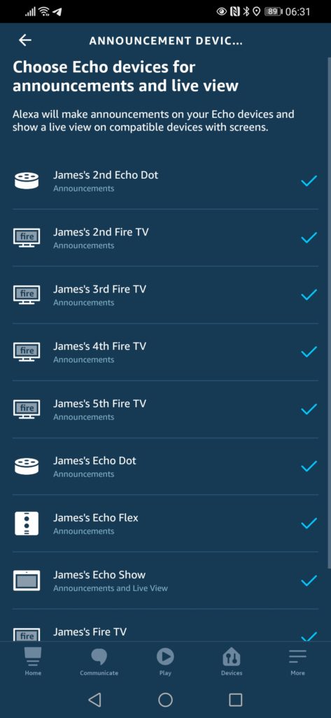 For that, you just need to go to the doorbell, either through your grouped devices or scroll and find it under all devices. Then announcement devices then select which device you want, in my case, I now have 11 devices. Most of which are no longer in use but Amazon doesn’t make it easy to remove them