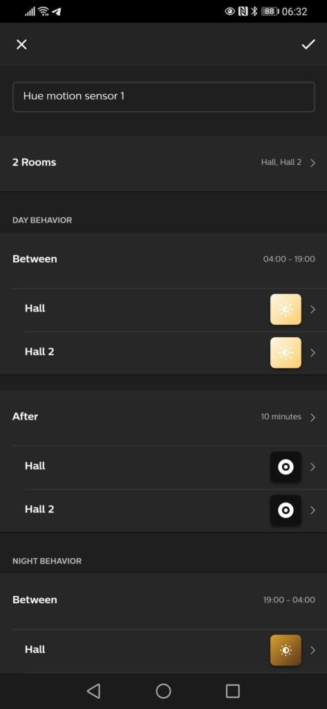 I thought I was being smart finding alternative solutions for the Hue Sensor, but it just works. There is almost no set up required once added thanks to the sensible automation process with a daytime and nighttime schedule with built-in options to switch off or return to the previous state. It is just a much more user-friendly solution, and the motion sensor itself is incredibly responsive. You can also adjust the sensitivity for both motion and light offering much more customisation than the Flex.