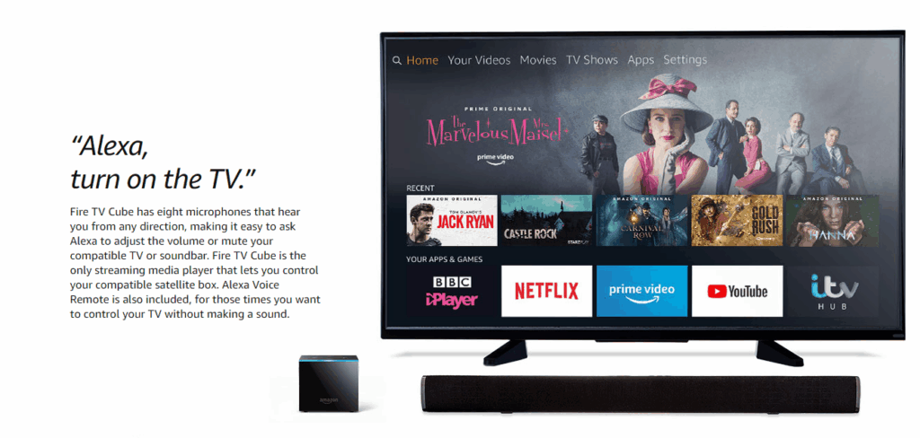 - Fire TV Cube is the fastest, most powerful Fire TV ever, delivering a fast, fluid experience for your favourite films and TV programmes.