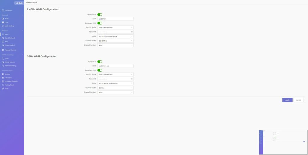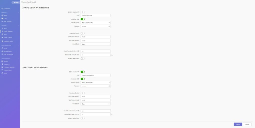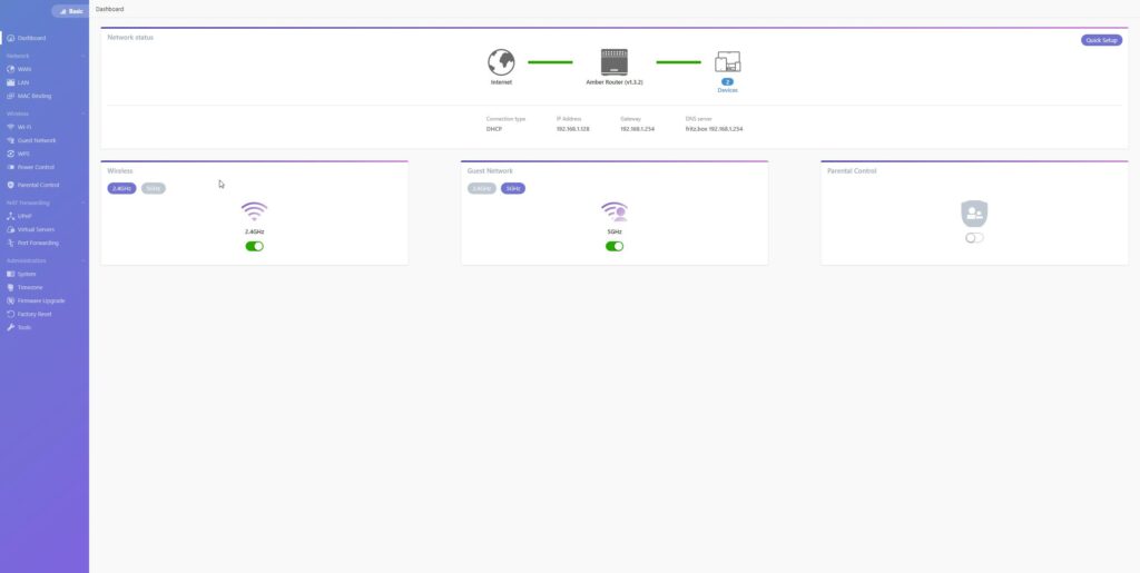 I was actually impressed at first, I was expecting this to have a similar issue to the Vilfo VPN Router, which could only do 2.4Ghz or 5Ghz at once. However, this allows two separate networks, one using 2.4Ghz and the other 5Ghz; you can also set up a guest network that can use either 2.4Ghz or 5Ghz.