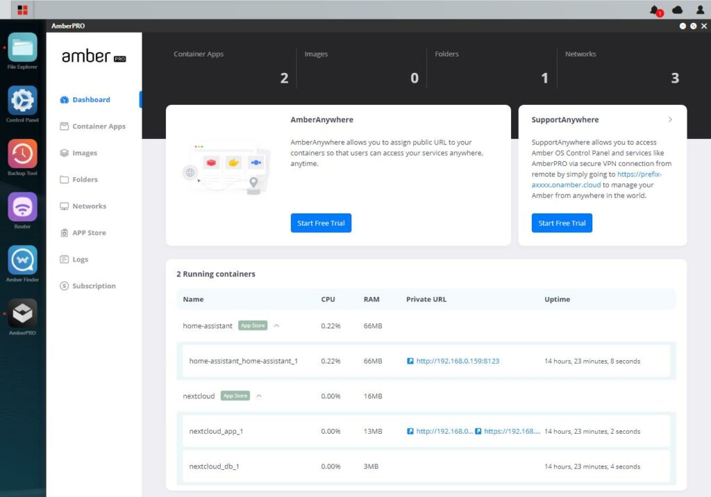 Docker is the stand out feature for me, and it is contained within the AmberPRO featureset. Oddly, this is not enabled by default and you are warned that it is Beta. However, without AmberPro the NAS features of this device fall well behind competing solutions, so it is an essential feature.