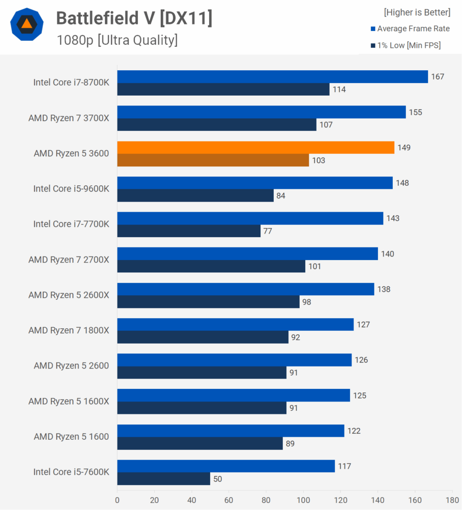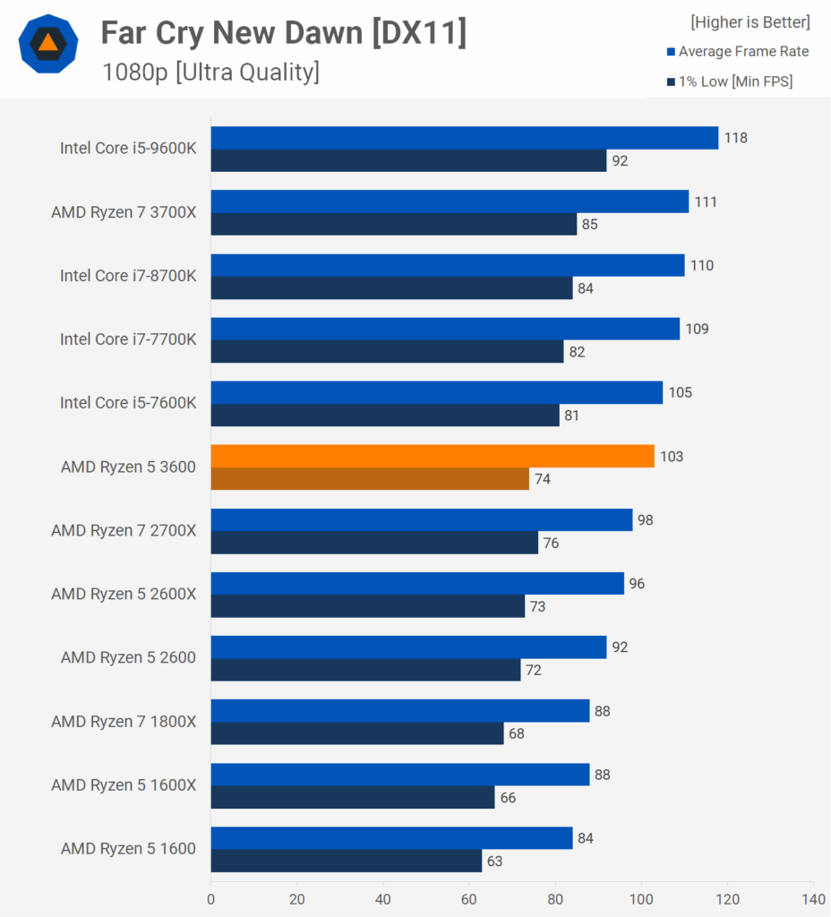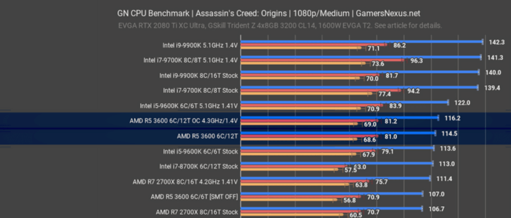 This trend continued for all the games Gamers Nexus tested with the R5 3600 beating the R7 2700X in everything tested and generally coming very close to the i5-9600K for most tests.