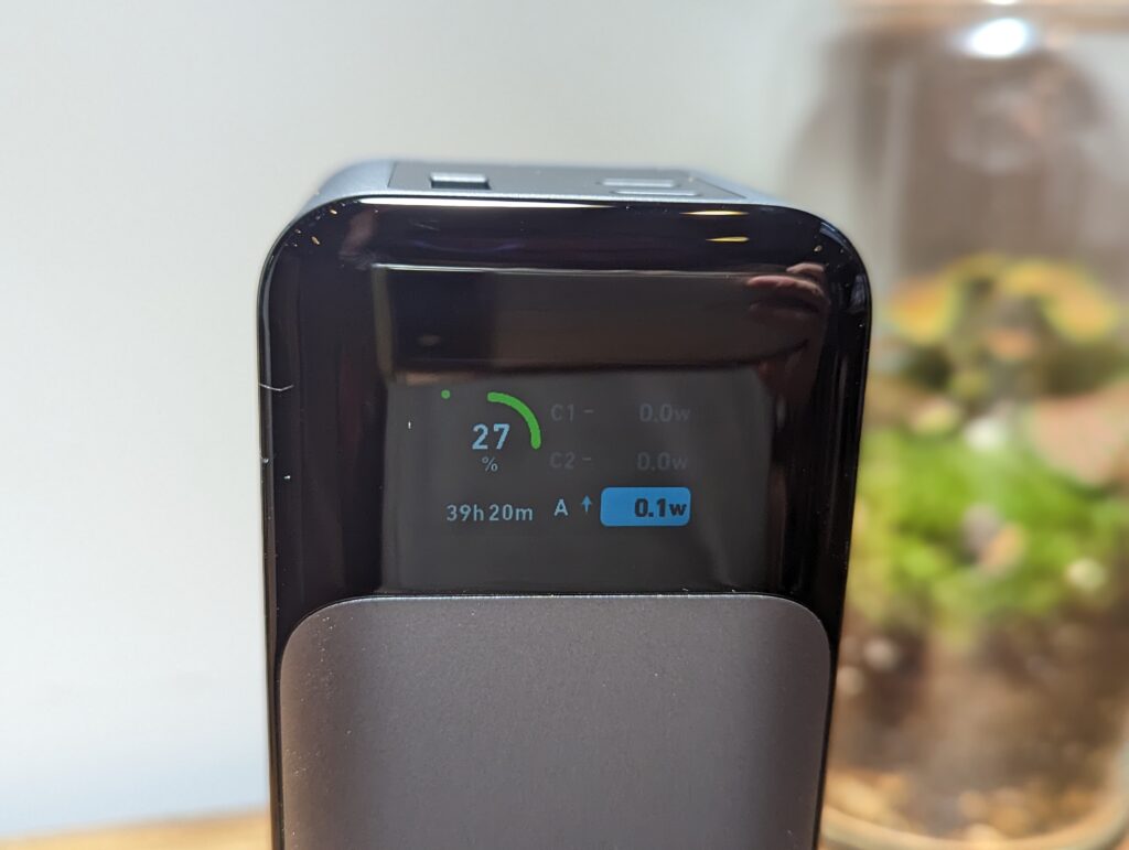 - Imuto X6G-27200 with a 27200mAh capacity and one port that can do 100W and another that can do 60W. It also has 2x USB-A ports. It is priced lower but doesn’t have the useful display that Anker has.