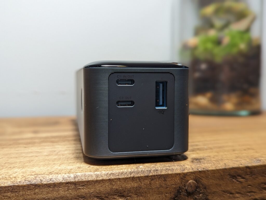 This only has three USB ports in total, which is a bit less than I’d like to see on a power bank at this price.