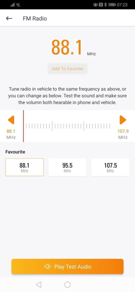 With the FM radio option, you will be greeted with three default stations to transmit to, but you can assign your own. I went for 88.1Mhz as it was close to the one, I was already using.