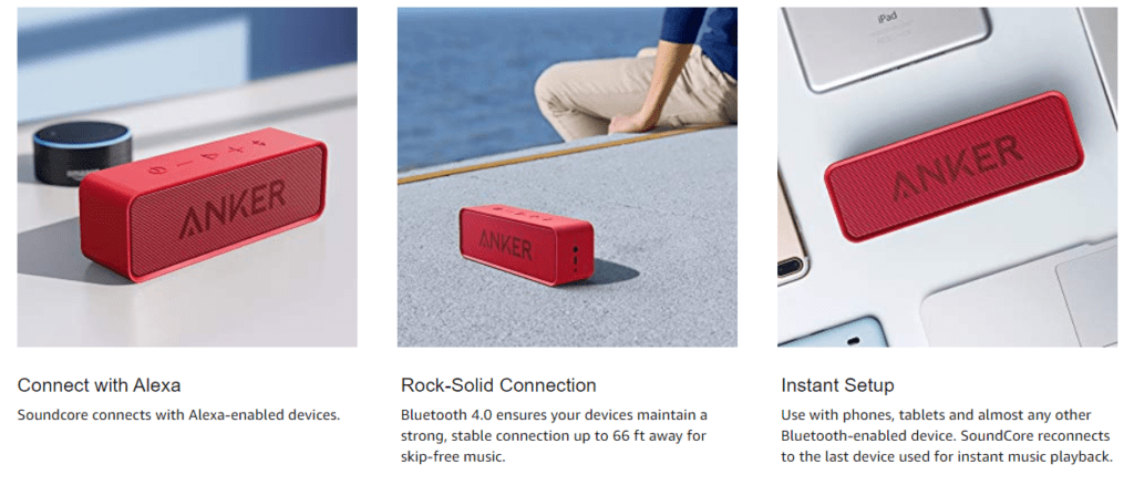 - Bluetooth 4.0: Instantly pair to your smartphone, tablet or to any Bluetooth compatible device and start streaming lossless CD-quality sound from up to 66 feet away. SoundCore reconnects automatically to the last device used. Built-in mic lets you take hands-free calls at any time.