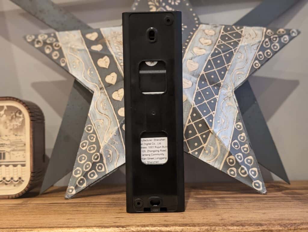 The mounting plate is detached using a SIM card removal tool, which will reduce the risk of someone maliciously removing the doorbell.