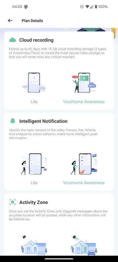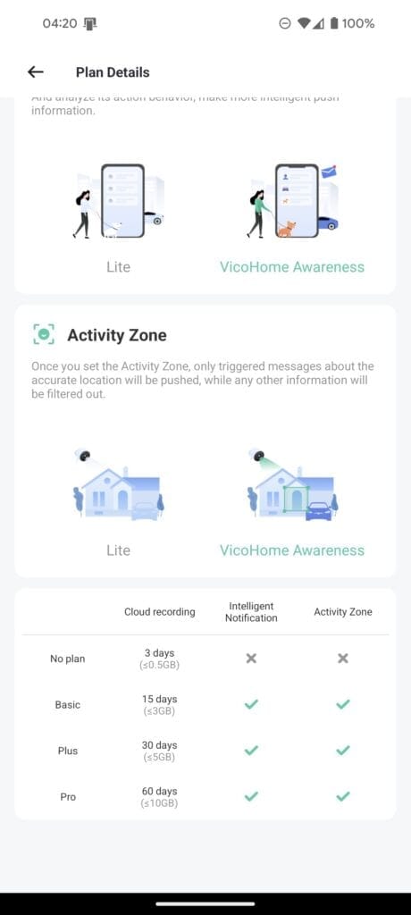 Annke/VicoHome has adopted a strategy similar to that of some other brands for their subscription service. It is not just the cloud storage this enables, the subscription walls off the smart detection (or intelligent notification as they call it) where the camera can identify people/cars/pets/packages. It also walls off activity zones.