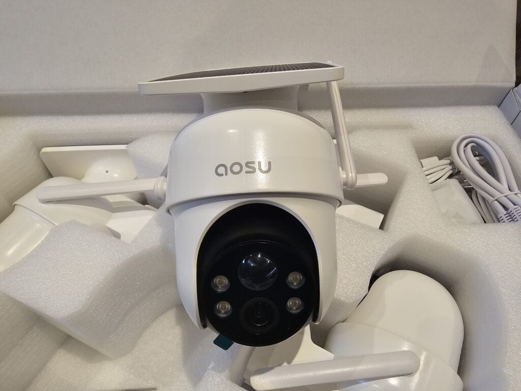 Aosu has now sent me the C9C-4H SolarCam D1 Classic Kit to review. This is a four pack of wireless security cameras which have a solar panel built in and a 2K pan tilt lens capable of panning 360° and tracking people it detects.