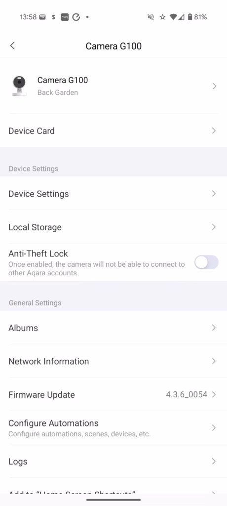 For those of us running more complex smart home setups, the G100’s RTSP support was a relief. Adding the camera into Home Assistant went smoothly. Once the RTSP stream was pasted into the software, I was able to automate actions such as light triggers on motion and receive smart notifications grouped with my other non-Aqara kit.