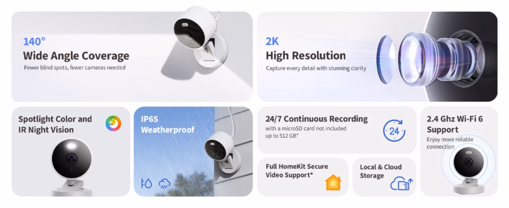 And, unlike many budget surveillance cameras, this also supports third-party ecosystems and can be integrated with Apple HomeKit and RTSP support, which allows you to record directly to a NAS/NVR or things like Home Assistant.