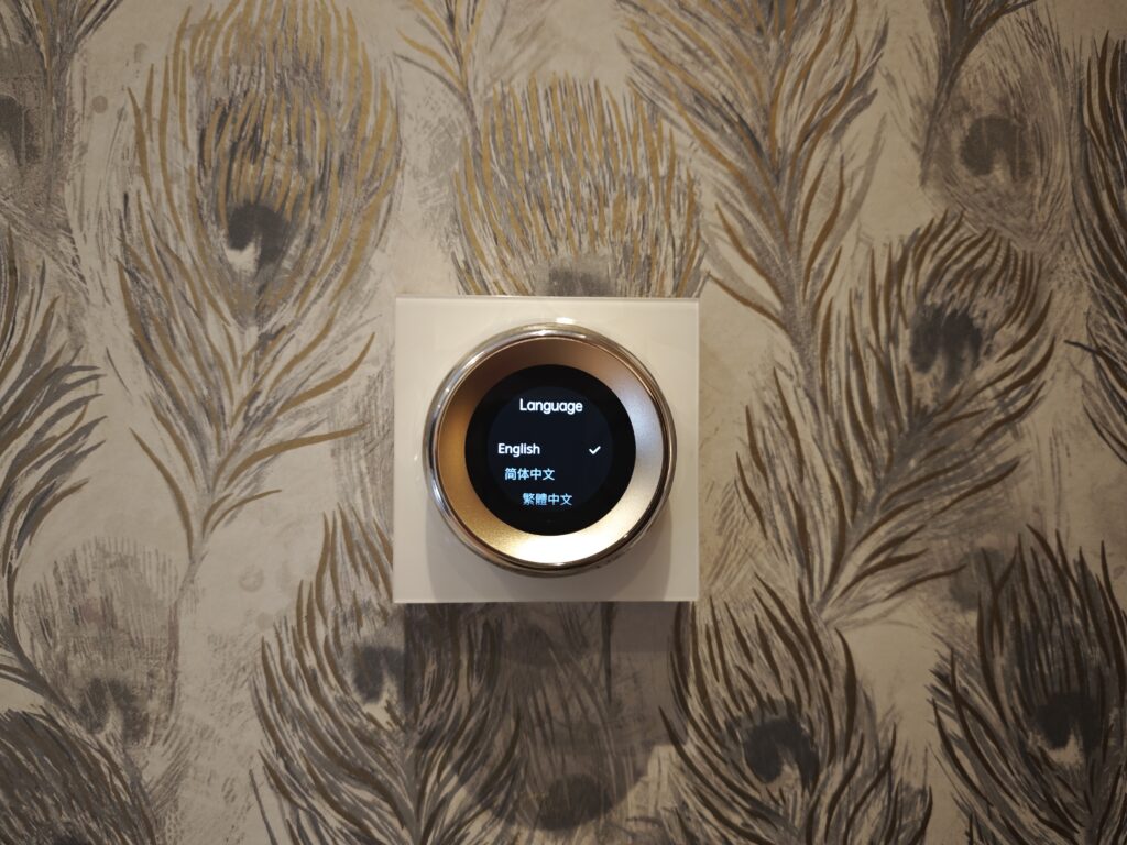 The built-in presence sensor activates the screen based on distance, reducing light pollution. Users can set auto-brightness and customise automation preferences when someone approaches the switch.