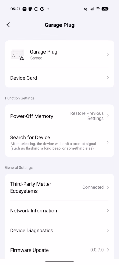 When using Thread mode, the power monitoring still works, but you only get a combined power figure for the entire outlet rather than per-socket data. This is disappointing and represents a real limitation if you’re planning to use Thread exclusively.