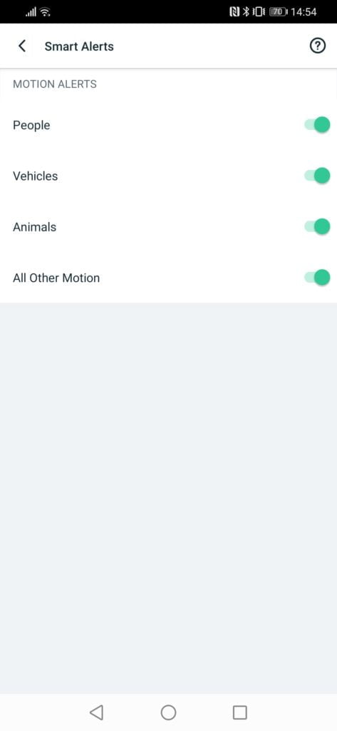 - People, animal and vehicle detection – select the things that are important for you to be alerted to