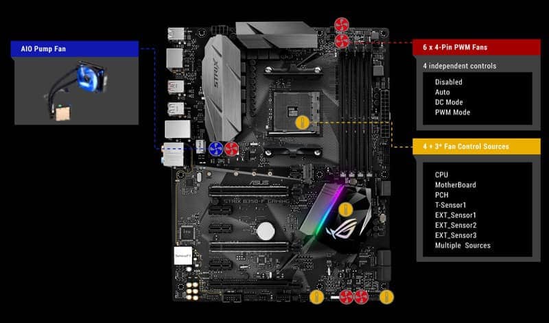 - 6 x 4-Pin PWM Fans – I have 2 input fans, 1 output and the CPU. Technically 3 headers are fine, but I want an option to add more and control them independently