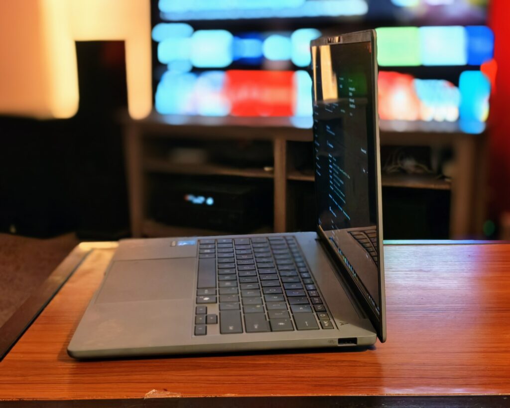 The USB 4.0 ports also support power delivery, meaning you can charge the laptop from either port. This adds convenience when setting up your workspace, as you’re not limited to a specific side for the power connection.