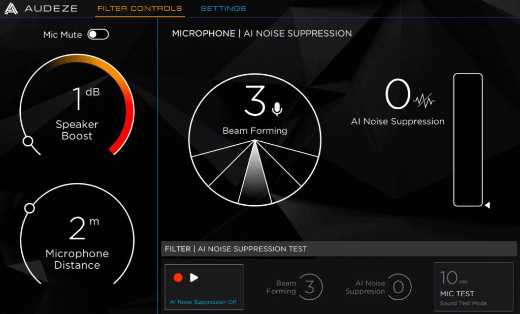 The app is simple and self-explanatory. You will want to set the rough microphone distance, mine was always at arm’s length, so I set it to 50cm. Then you can set the beamforming and AI noise suppression. That’s about it!