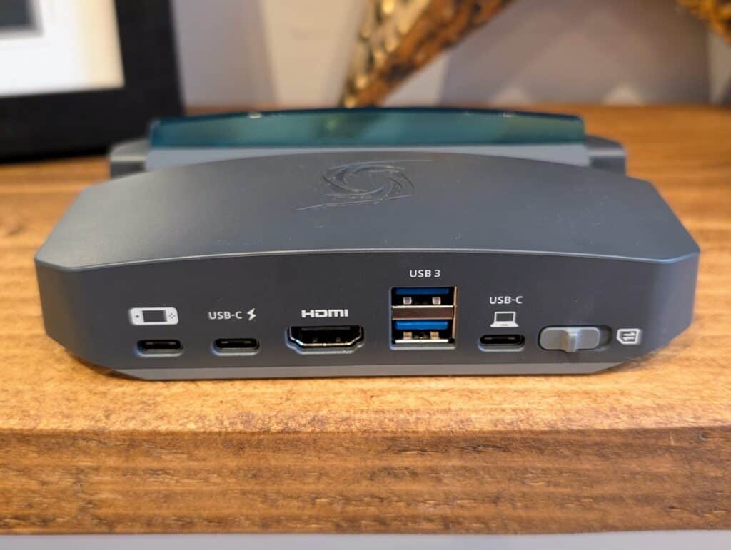 The GC515 offers a range of connectivity options, including two USB-A ports, three USB-C ports, and an HDMI output. This allows users to connect various peripherals such as a mouse, keyboard, or controller, effectively turning the device into a mini docking station for handheld consoles.
