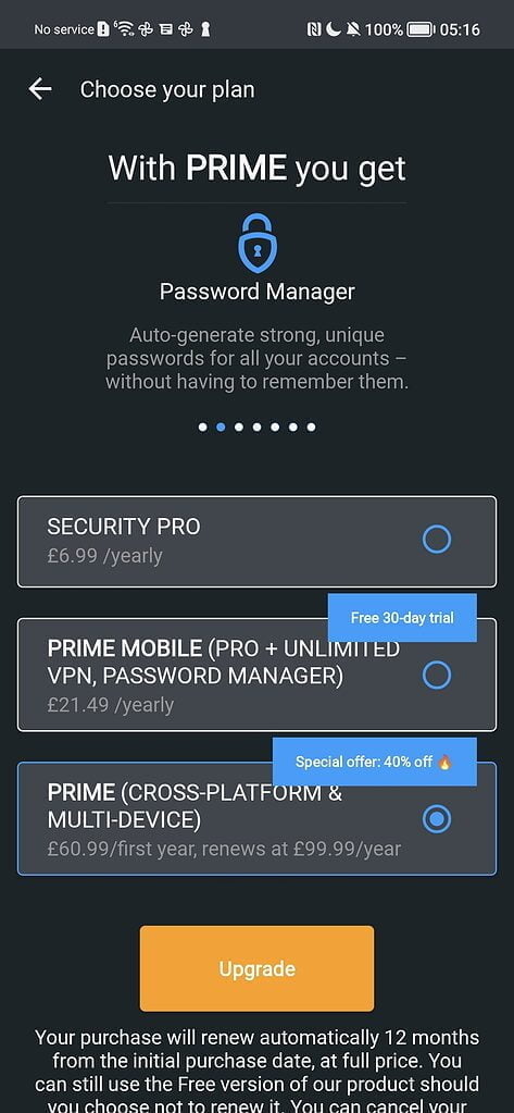There is then Prime Mobile which unlocks all the features, including unlimited VPN usage and the password manager, for just £21.49 per year.