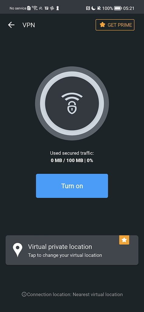 The VPN is handy, however, with the free version, it is limited to 100MB of data, so you should only use it when needed. With the free option, it secures your data but does not give you the option to select your location.