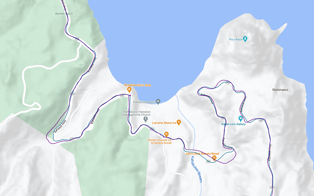 However, I haven’t experienced this issue with other locations. Plotting routes in my hometown, it works perfectly. Maybe the mapping for Maui is just broken.