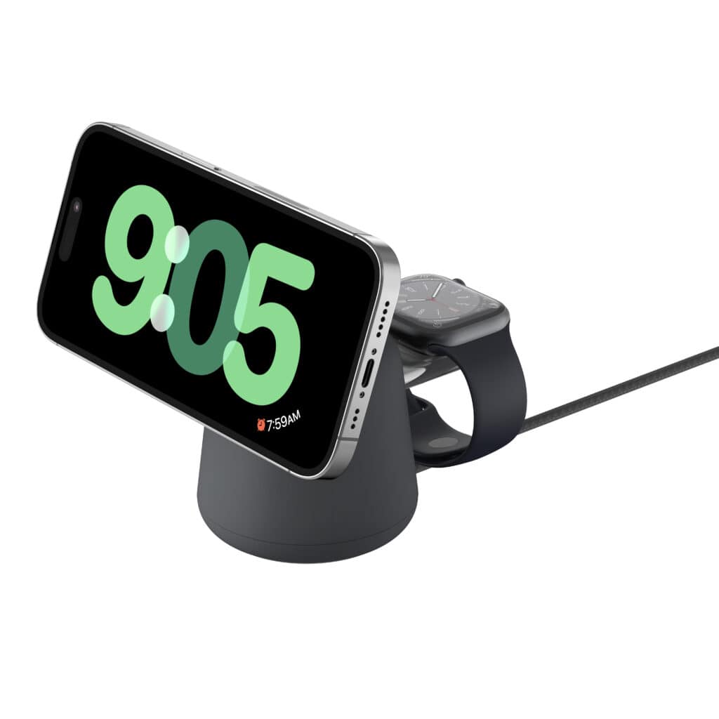 The Belkin BoostCharge Pro 2-in-1 has a sleek and modern design that complements the aesthetic of the latest iPhones.