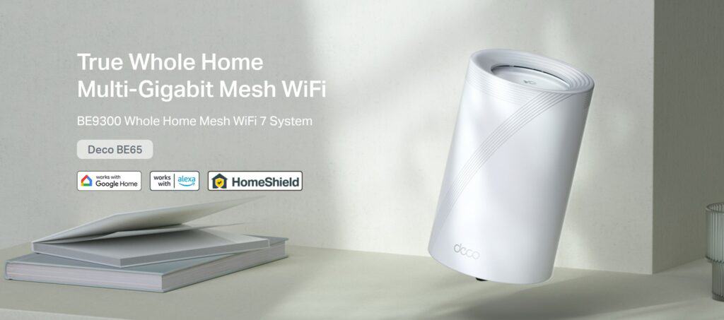 The TP-Link Deco BE65 is an affordable tri-band mesh WiFi 7 system designed to provide fast and reliable whole home coverage. It offers 11-stream connectivity with wireless speeds up to 11Gbps, taking advantage of the latest WiFi 7 technologies including the 6GHz band, 320MHz channel width, and multi-link operation for reduced latency and increased throughput.
