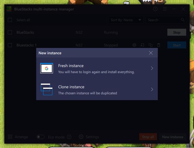 There are two options for setting up new instances, you can clone an existing profile or create a brand new one. Cloning works well, avoiding you having to re-install everything and login into all your apps. However, if you plan to play 1 game with multiple accounts, you would need to reset the game or use a new instance (as it will be logged into your main account).