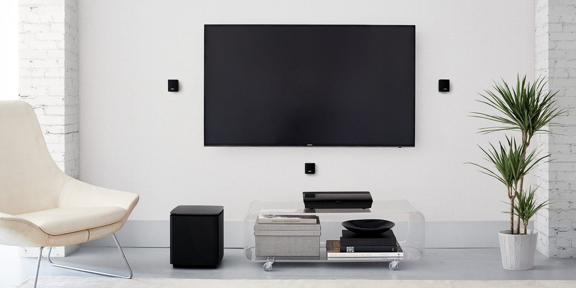 At £2,199 the Lifestyle 550 is a massive investment for most people, some people would rightly argue that you can build a 5.1 system with separate for less, and possibly better performance. However, these are not like for like systems; I am not aware of any speaker on the market this small with this much power and quality. Even the popular fashion style speakers are much larger, my Tannoy Arenas are probably more than twice the size of each of the speakers here. Then you have the wireless bass module, something you don’t really see in the separates market, and I have found it works without connection issues. The whole system looks ultra-luxury too the console is way more attractive than your typical AV receiver and the combination of that, and the tiny speakers mean you can have an installation that is far more discrete than any separates solutions (unless you go in wall/ceiling).Moving away from separates there is not a lot of 5.1 home cinema systems around nowadays, Pioneers, Onkyo and Yamaha have them, they are much cheaper but also use large ugly speakers with performance not on the same level as this.The best comparison we have is against premium soundbars with additional surround and bass. That comes in the form of the Bose Soundbar 700 which costs £1800 when you add the bass and surround or the Sonos. With the Sonos, the price ranges from around £1700 if you use Sonos Play1 for the surrounds or £2300 if you use the Play5.The Sonos option is good, but with only optical in it can’t compete with Bose for the audio standards which has Dolby Digital, Dolby Digital Plus, Dolby TrueHD, DTS and Multichannel PCM.While I have not used the Soundbar 700 I can’t compare how well it performs compared to the Invisible Speakers, but I will assume the Invisible speakers are going to sound better. With the Lifestyle 550 you are paying around £400 extra for a system with better surround separation compared a soundbar, a huge number of inputs making controlling the system much easier, and an impressive universal control. All of which I think justifies the extra cost.Overall, if the price doesn’t scare you off and you want a proper 5.1 system that is discrete as possible then this is about the best option on the market.[button link=”https://amzn.to/2EFx2mI”] Buy from Amazon[/button]