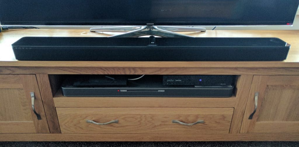 As you would expect from Bose, the build quality is impeccable and as far as soundbars go it is attractive. I don’t have experience of a large number of soundbars but I would say its dimensions are perfect for me, while it is quite long, it isn’t too tall, and the depth isn’t too bad either. This means it fits under my TV comfortably without blocking anything or looking weird.